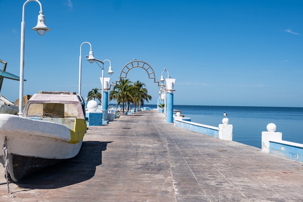 De persze van előnye is. A reggeli kávé mindkettőnknek gyenge pontja. Itt alapvetően hosszú vizes amerikai kávét adnak a reggeliző helyen. Lehet presszó kávét kérni, de szerintem nem finom amit főznek. Az előttünk álló kis téren viszont már reggel korán nyit a Starbucks (szerintem a város egyetlen ilyen kávézója), és itt biztosra tudjuk, hogy melyikünk mit szeret kérni. Emiatt ott indítottuk a reggelt, és a kávé mellé szendvicset is vettünk, mert ezen a szálláson nincs reggelink. Majd felvettük a kocsink és elgurultunk a patyolatba a tiszta ruháért. Innen már egyenesen Celestún felé vettük az irányt. A másfél órányira lévő városkában voltunk fél 11 előtt.