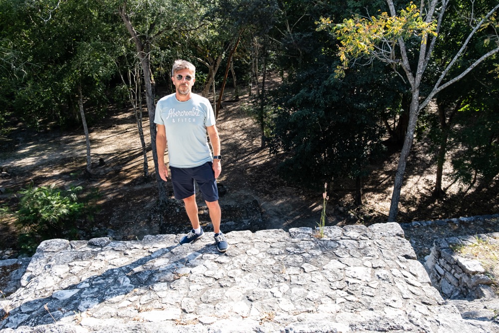 Az első rom egy negyed órányira volt a szállástól, Chicanná. Bő egy órát voltunk ott édes kettesben. Már mikor elindultunk be a romokhoz volt egy kis zavarodottság bennünk: az én órám és telefonom fél 10-et mutatott, a Bandié fél 9-et. A kocsi órája szintén fél 10-et.
