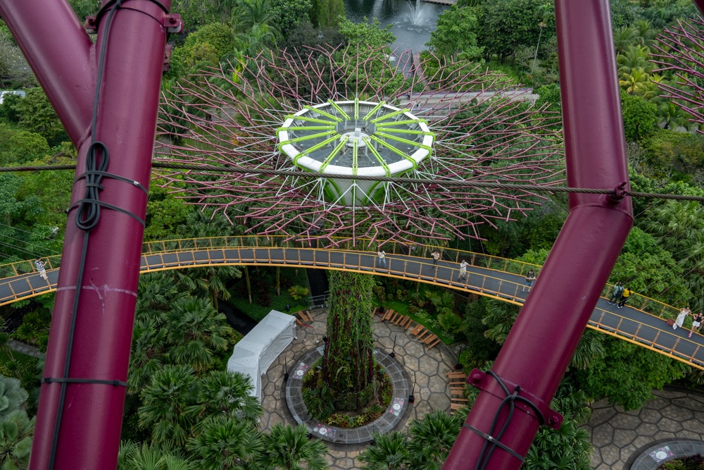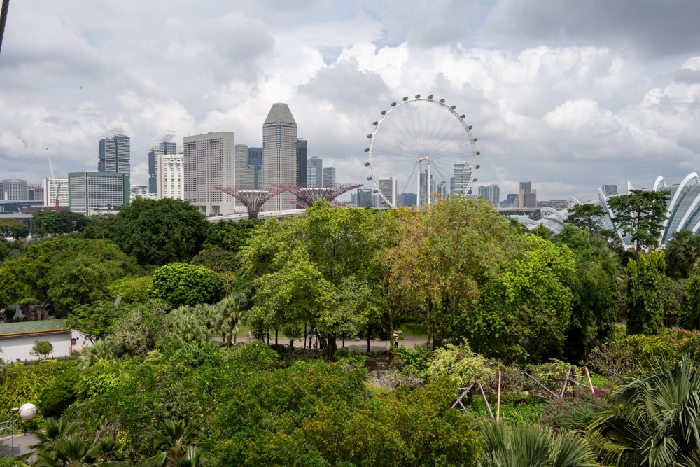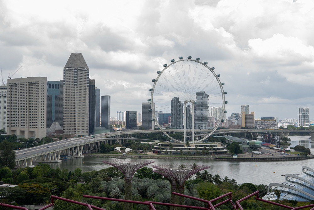 Először elsétáltunk a szingapúri Formula 1 verseny helyszínére, ami nincs messze. Reménykedtünk, hogy be tudunk menni, de mivel este itt nagy buli lesz, tűzijáték és party így nem engedtek be senkit. Viszont mellette van a Singapore Flyer-nek nevezett óriáskerék, melyből páratlan a kilátás a városra és a forma 1 pályára is. 165 méter magasan van a kerék legmagasabb pontja és onnan lehet látni majd mindent. Kissé fújt ma a szél, ezt ott fent a magasban ugyan nem éreztük a kabinban, amiben ültünk, de ahogy süvített és rázta a pálmafák ágait, úgy egyértelmű volt.